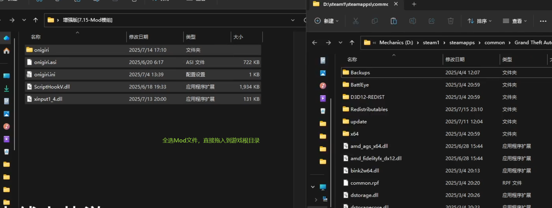 把解压出来的文件拖入游戏根目录