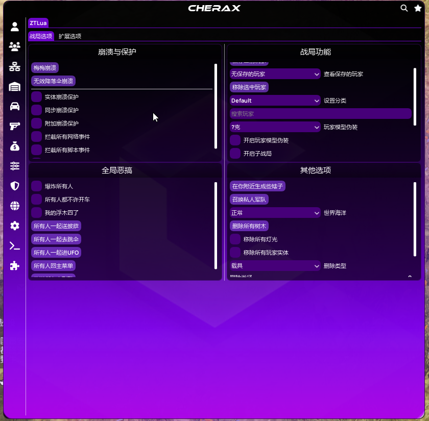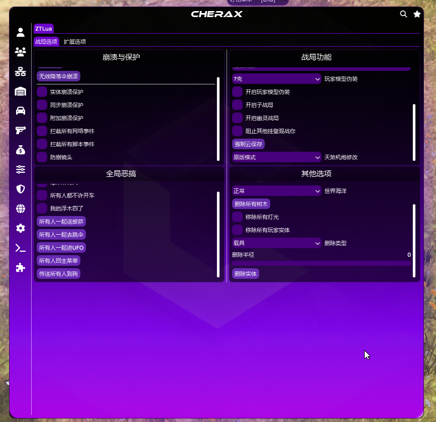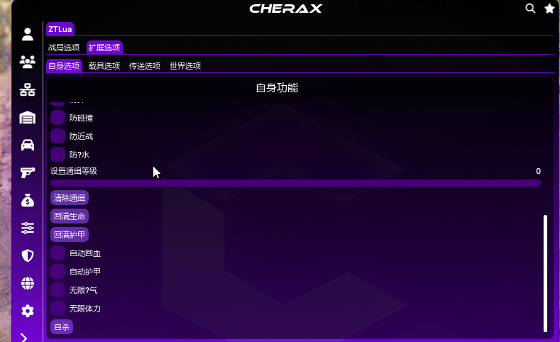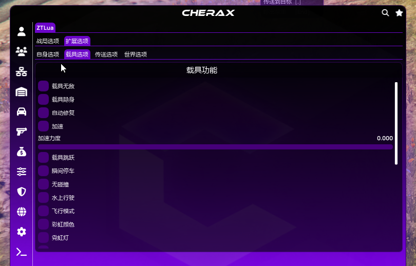 GTA5-侠盗猎车手V教程Cherax 樱桃Cherax Lua 加载教程付费Lua加载教程SpectraX & ZTSpectraX 功能展示本页总览SpectraX 功能展示 樱桃SPX & ZT
