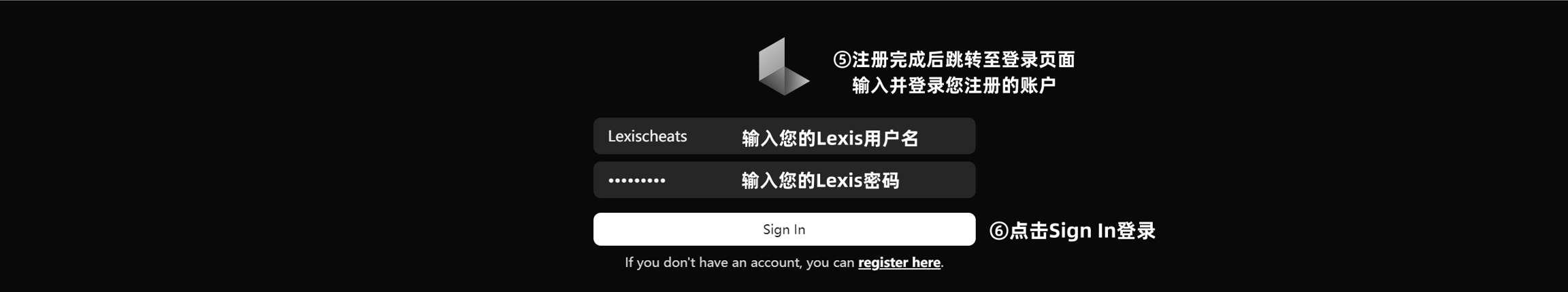 跳转到登录界面代表注册成功,输入刚注册的 账号 密码 点击 Sign In 登录即可
