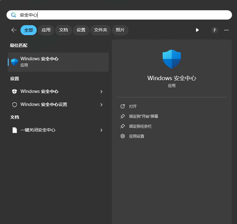 按键盘 Win+Q 搜索 安全中心