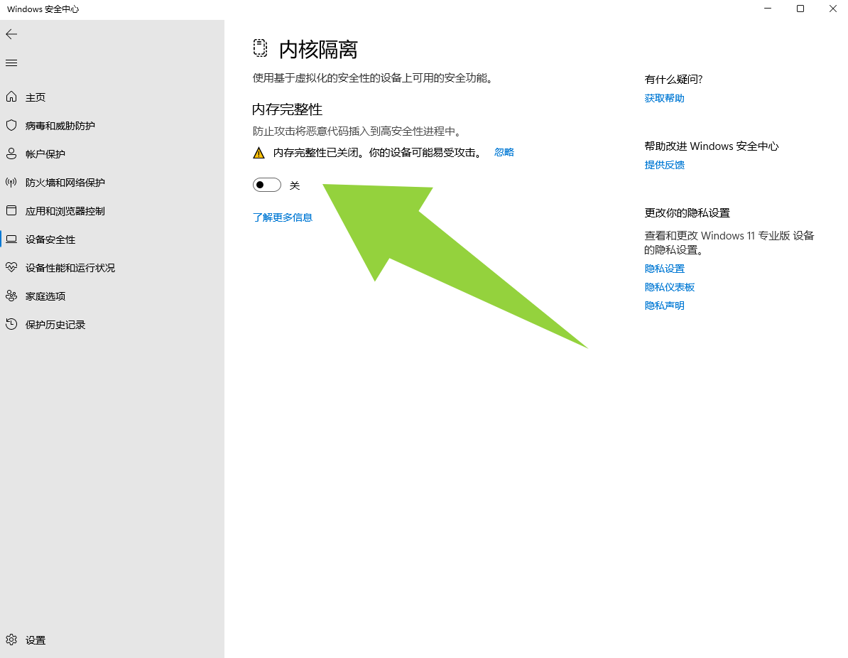 例如:阻止易受攻击的驱动程序加载之类,需要全部关闭