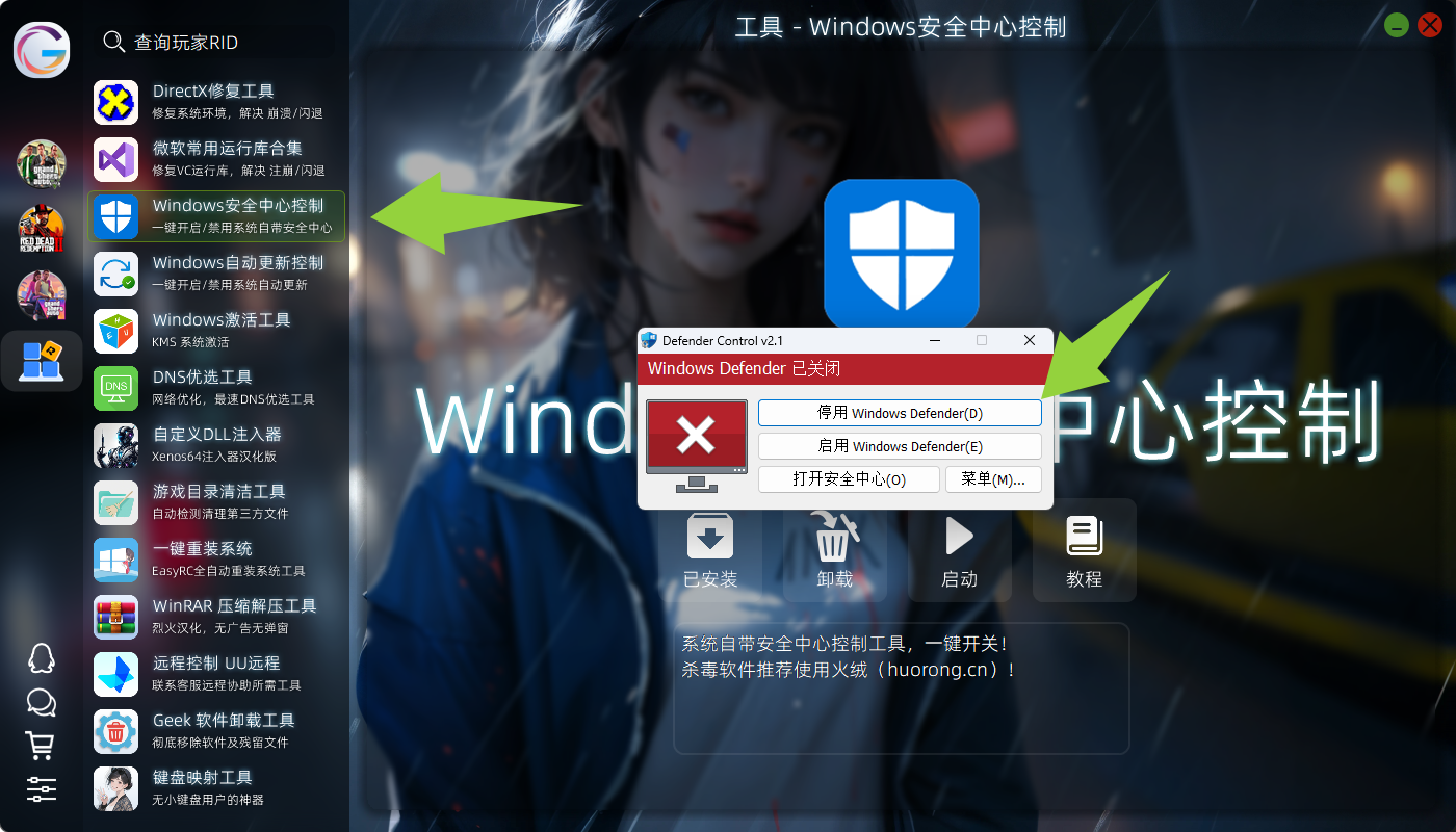 一键禁用Windows安全中心