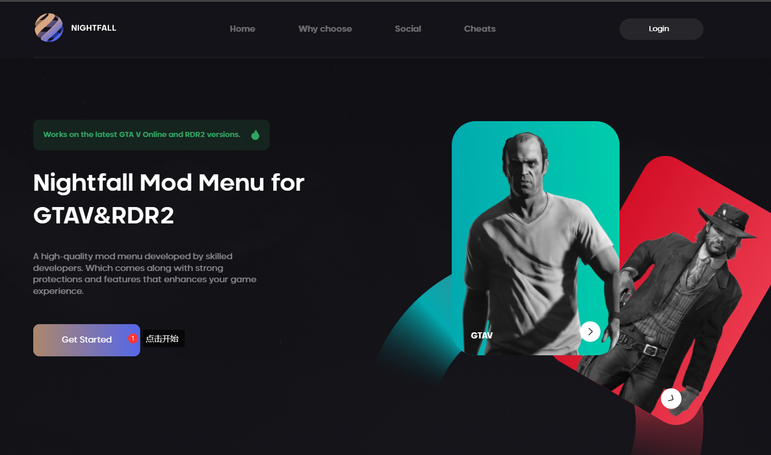 主页面(选择进入线上/线下的页面) 右键以管理员身份运行Nightfall启动器