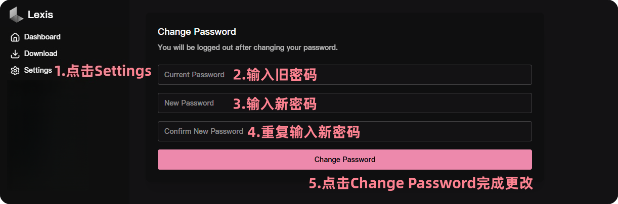 Lexis 修改密码