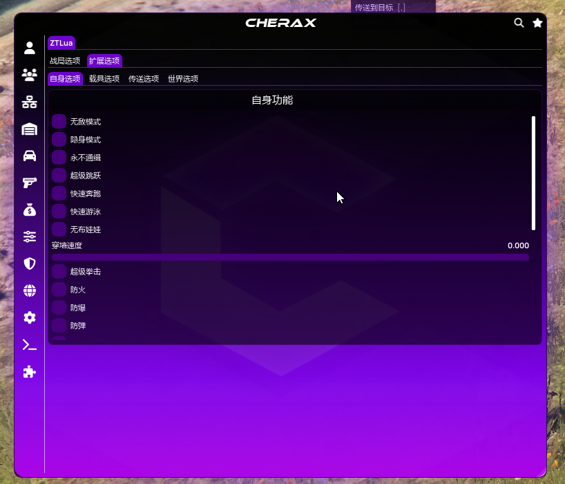 GTA5-侠盗猎车手V教程Cherax 樱桃Cherax Lua 加载教程付费Lua加载教程SpectraX & ZTSpectraX 功能展示本页总览SpectraX 功能展示 樱桃SPX & ZT