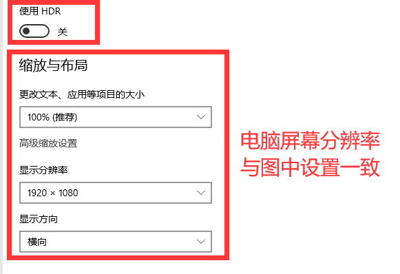 确保您的游戏图像设置为1920*1080无边框窗口模式!及电脑屏幕分辨率,设置为1920*1080