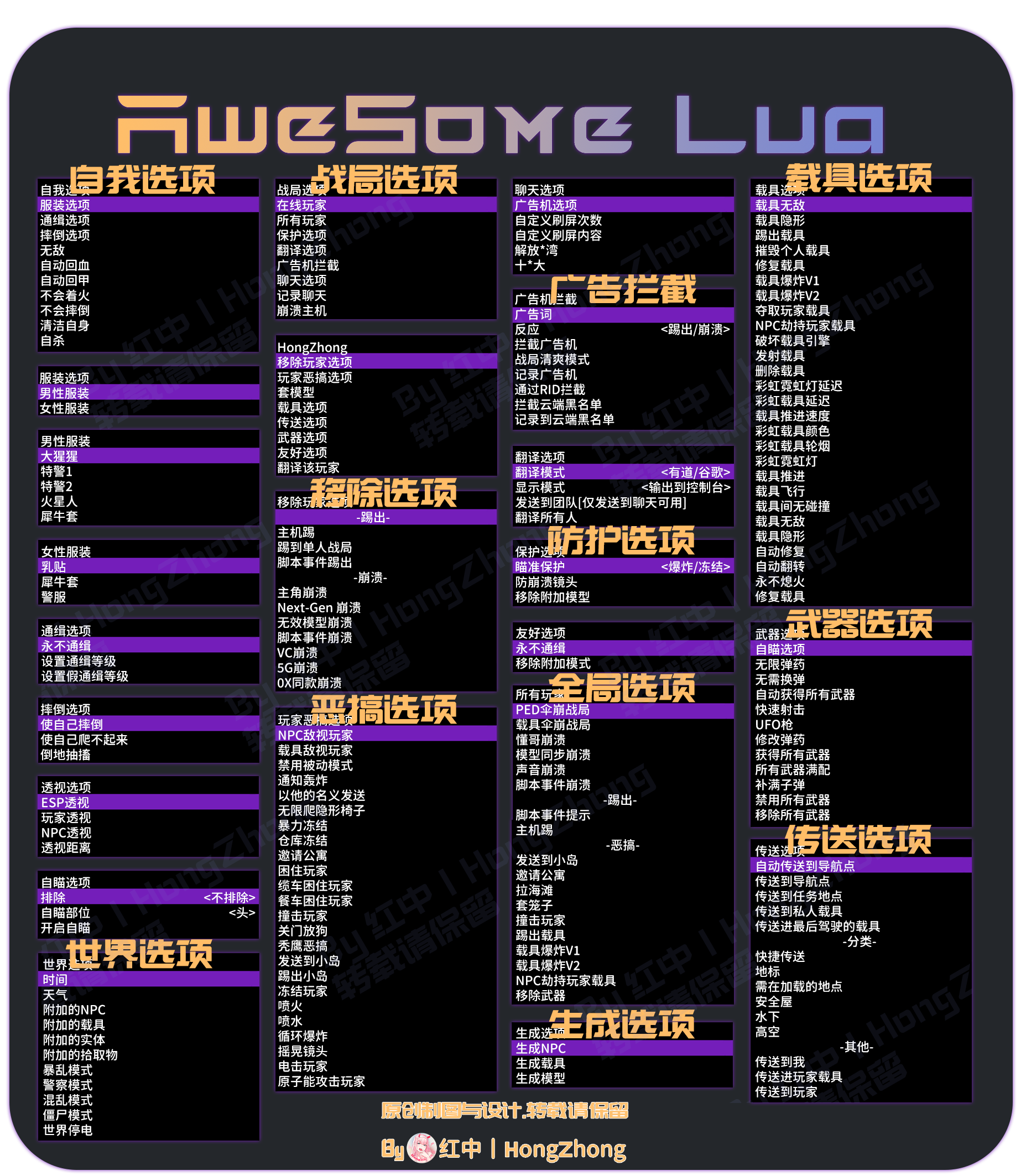 注入成功后点击Lua选项-已加载子菜单-选择Awe加载使用即可