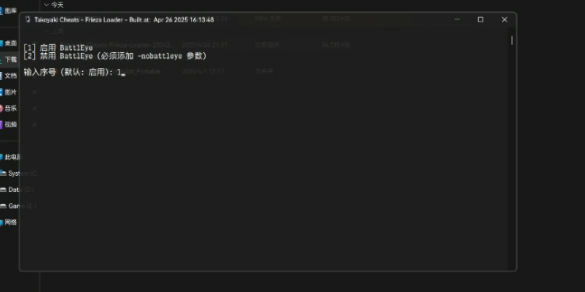 输入1并按下回车选择启用BattEye(选项2暂不可用)