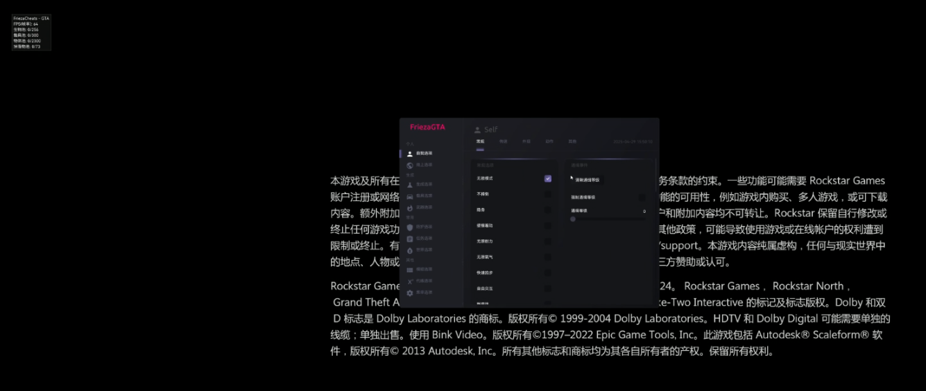 出现上图提示后即可打开GTAV游戏,Frieza将会自动注入