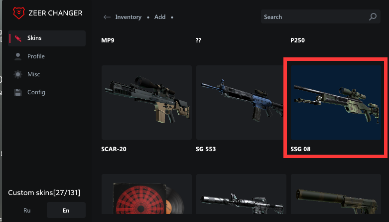 选择您要修改的武器类型 ( 例如:SSG08 / 鸟狙 )