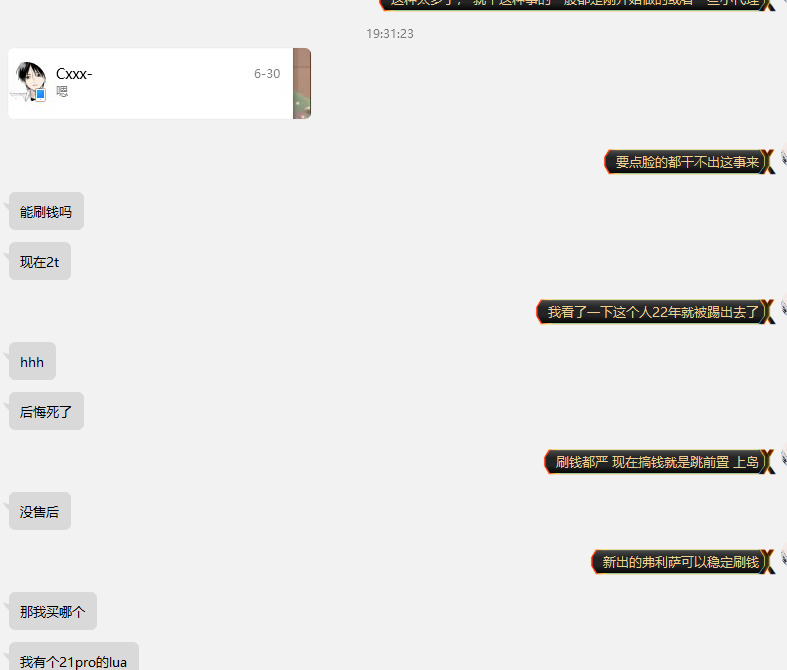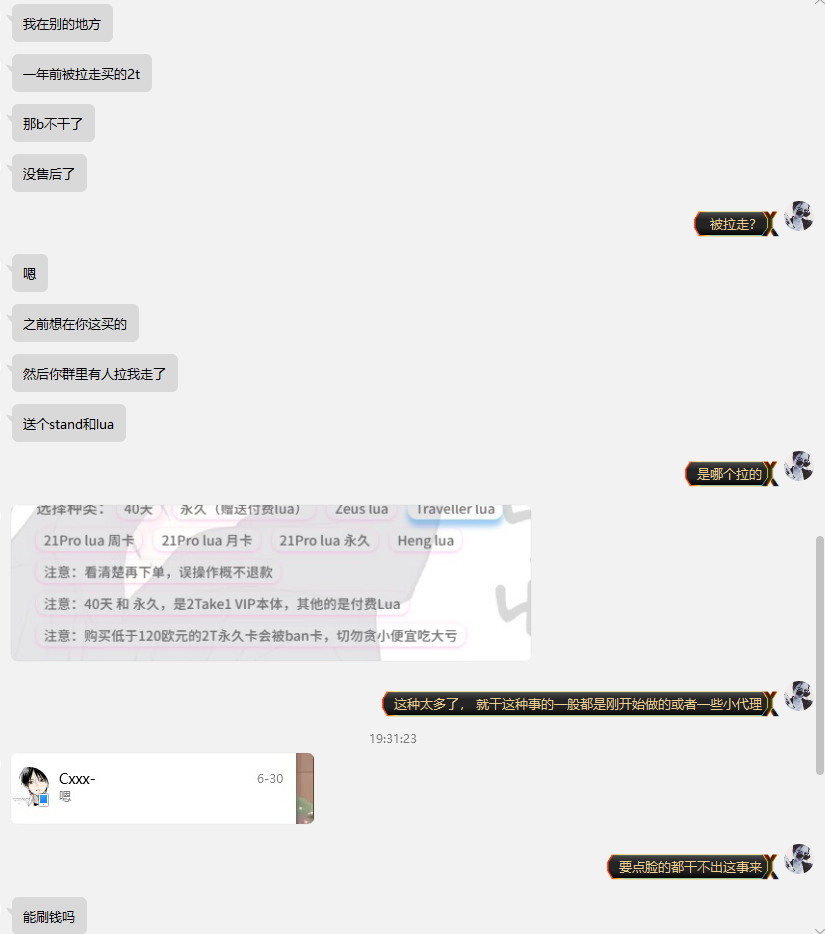 偷人:指加入各大群聊(或者用小号加),每天就等着萌新询问什么菜单好/什么样之类的问题.它们就会使用小号(有脑子的都是小号加你们,防止自己暴露),一般开口第一句肯定是:兄弟,要辅助吗?