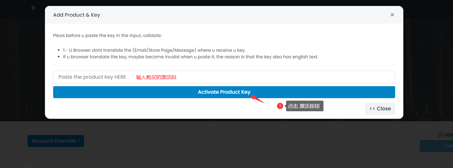 保存好自己的激活码跟注册的账号密码, 若丢失无法找回后果自负 本教程仅做正常步骤演示, 根据教程操作出现问题优先联系你的卖家解决