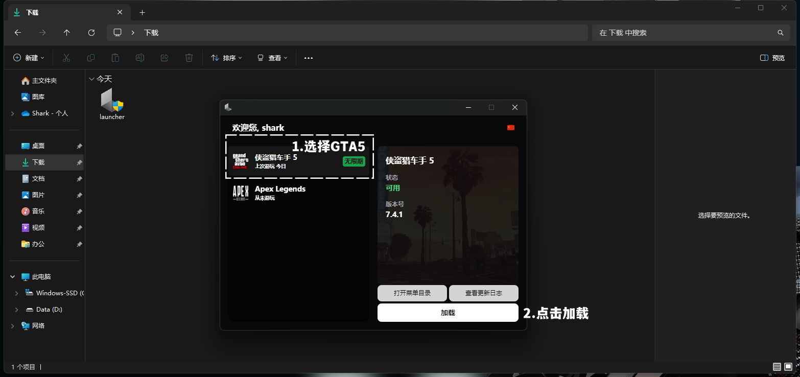 电脑重启完成后启动器会自动打开(如果没自动打开,你需要手动打开软件并)