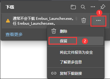 下载Erebus 如果下载出现危险提示, 信任并保留即可