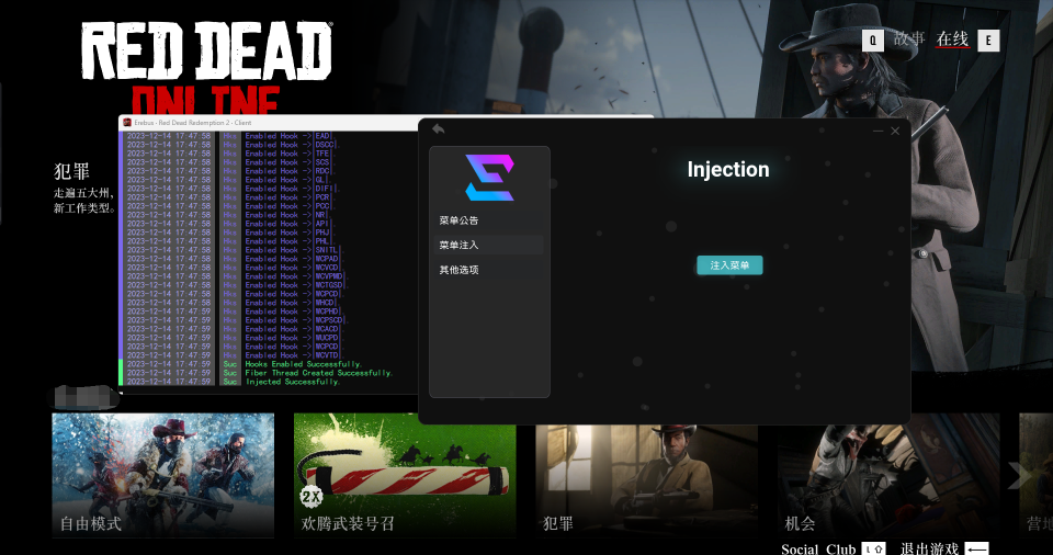 弹出这个界面,就代表注入成功,最小化该界面即可(关闭的话游戏也会退出)