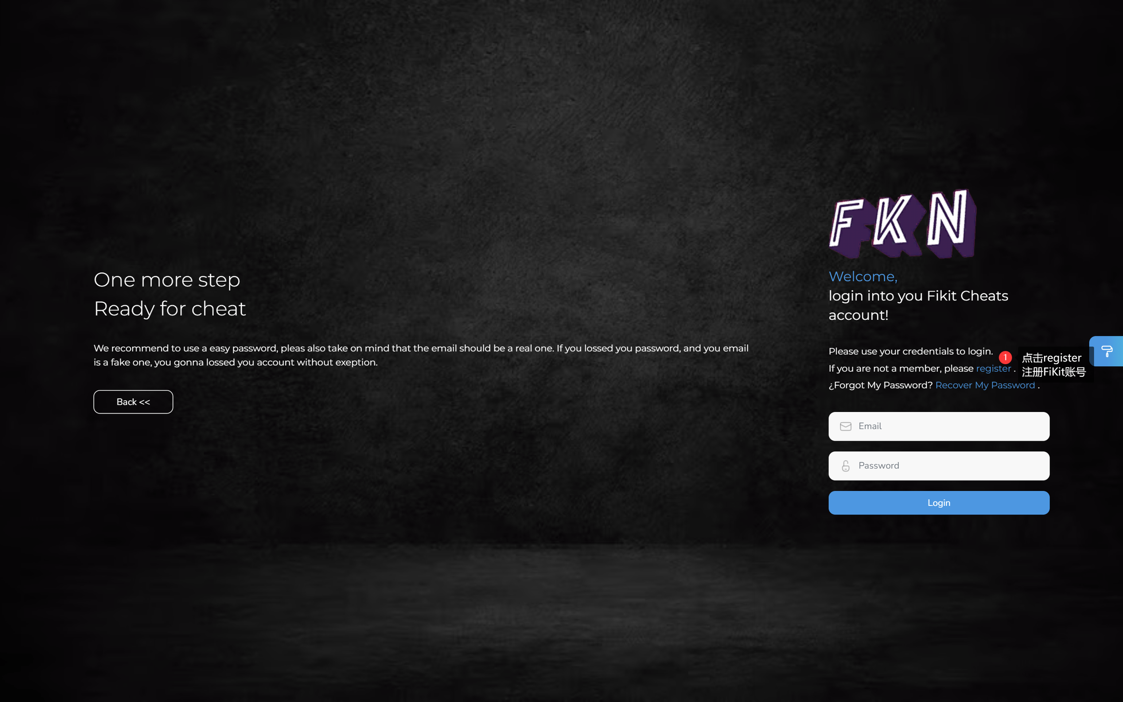 注册地址:https://fikitcheats.com/register