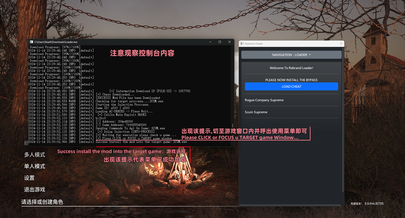 管理员运行注入器后,登录