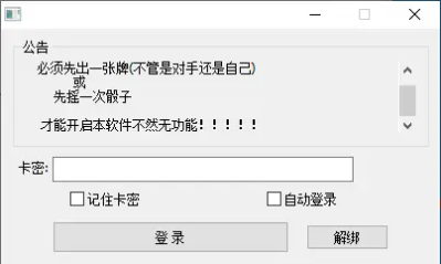 输入卡密点登录即可,尽量不要勾选自动登录,过一会自动出现功能菜单