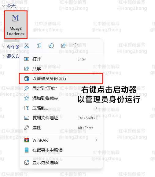 下载 MdayS Loader.exe ,如果下载出现危险提示, 信任并保留即可