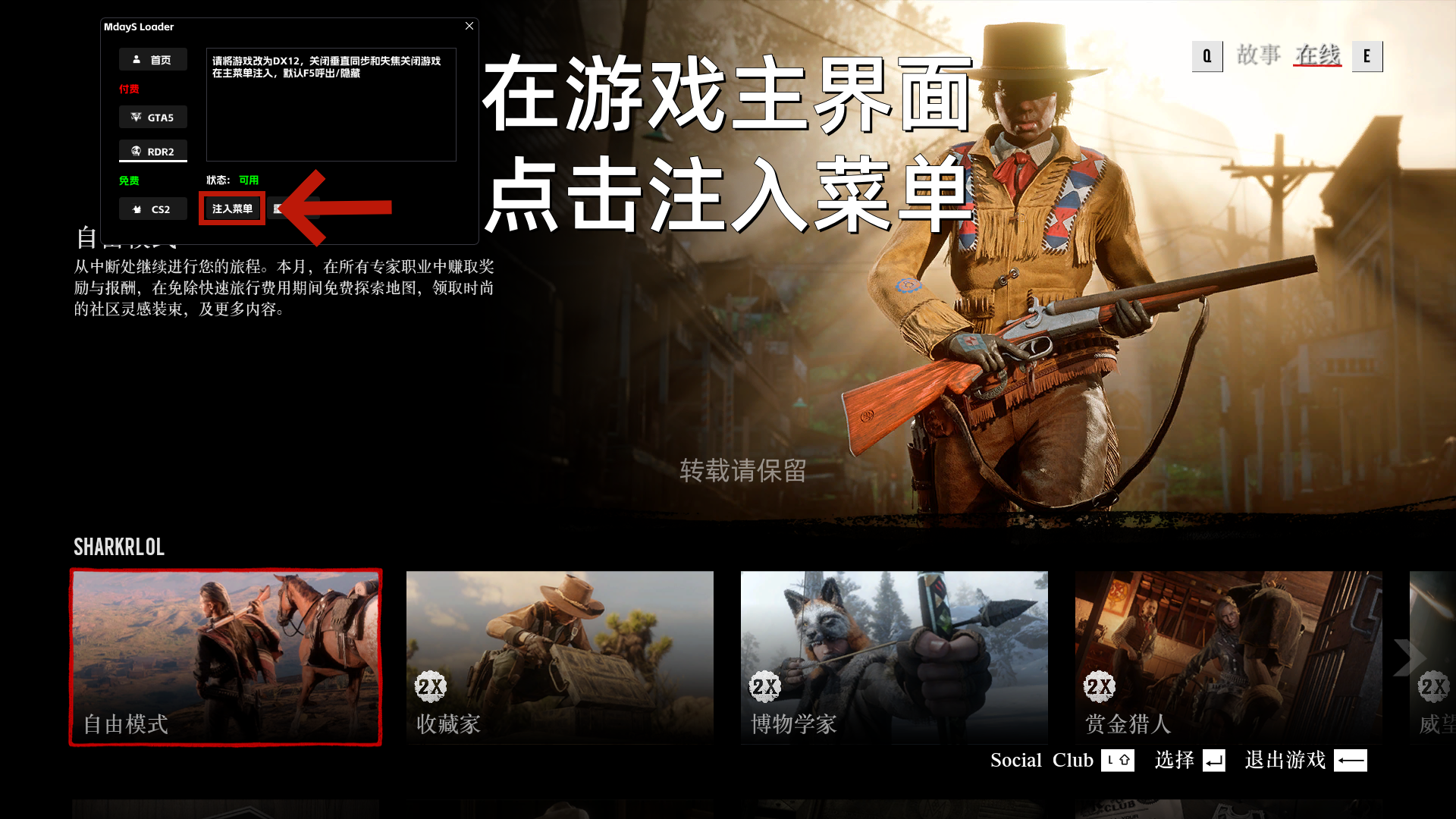 打开游戏至主界面,点击菜单上的“注入菜单”,等待程序框加载