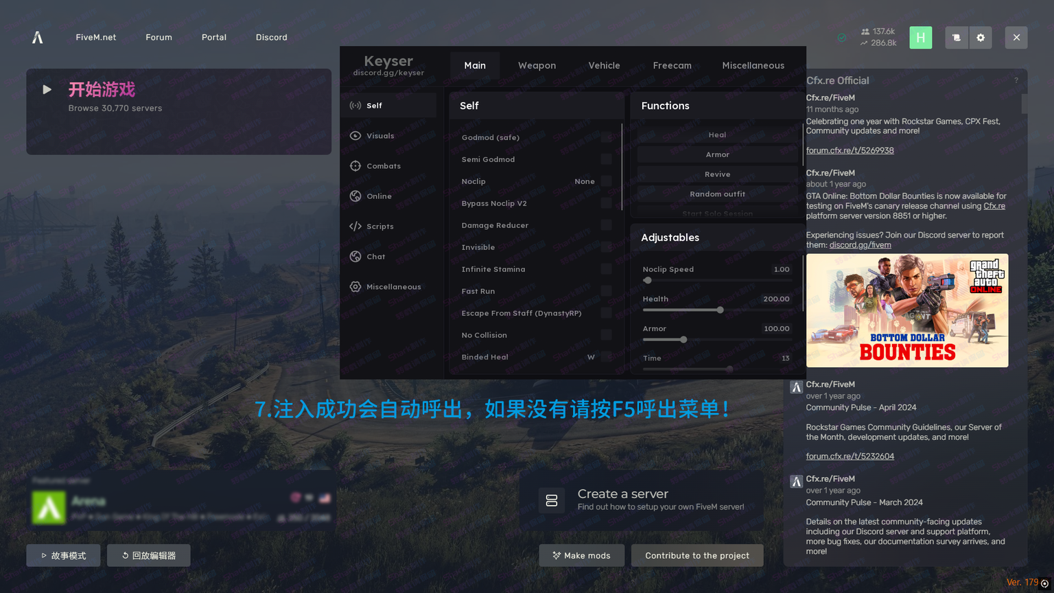 自动呼出菜单时即代表注入成功.然后你可以加入你的服务器游玩~