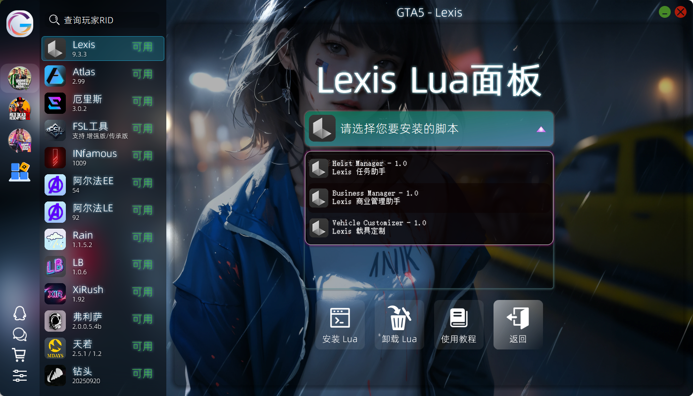 使用 银色安装器 Lexis Lua面板 一键安装Lua脚本